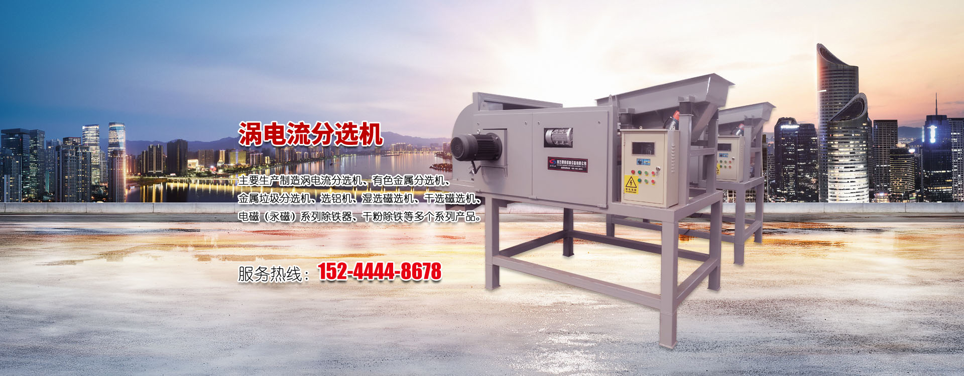 主要生產(chǎn)制造渦電流分選機、有色金屬分選機、金屬垃圾分選機、選鋁機、濕選磁選機、干選磁選機、電磁(永磁)系列除鐵器、干粉除鐵等多個系列產(chǎn)品。